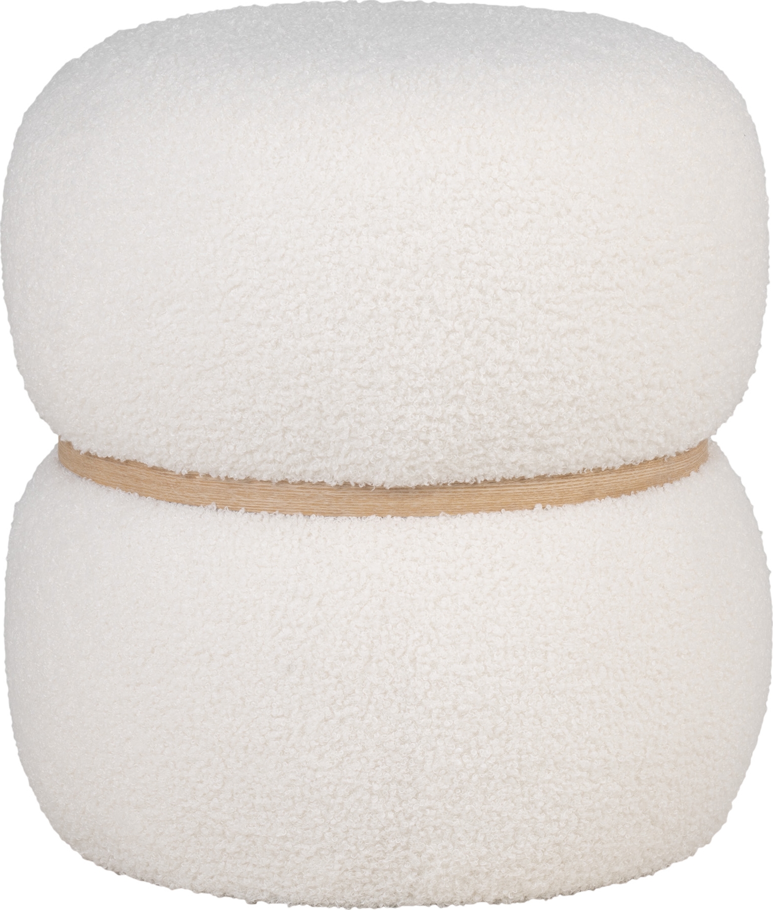 Sittpuff av trä med klädsel av boucletyg. Levereras monterad.
