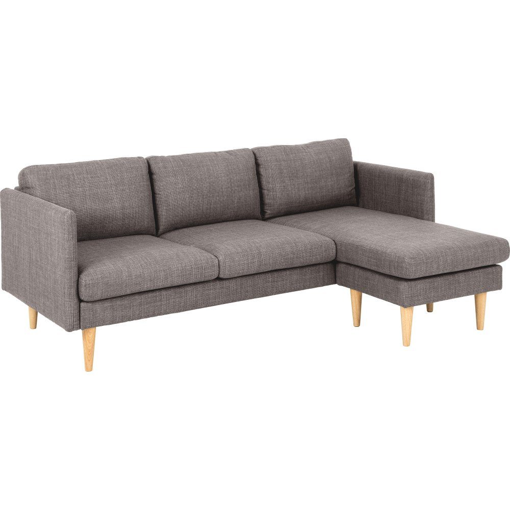 Divansoffa med tygklädsel och underrede av gummiträ. Sits med pocketfjädrar. Divanen går att montera på valfri sida.