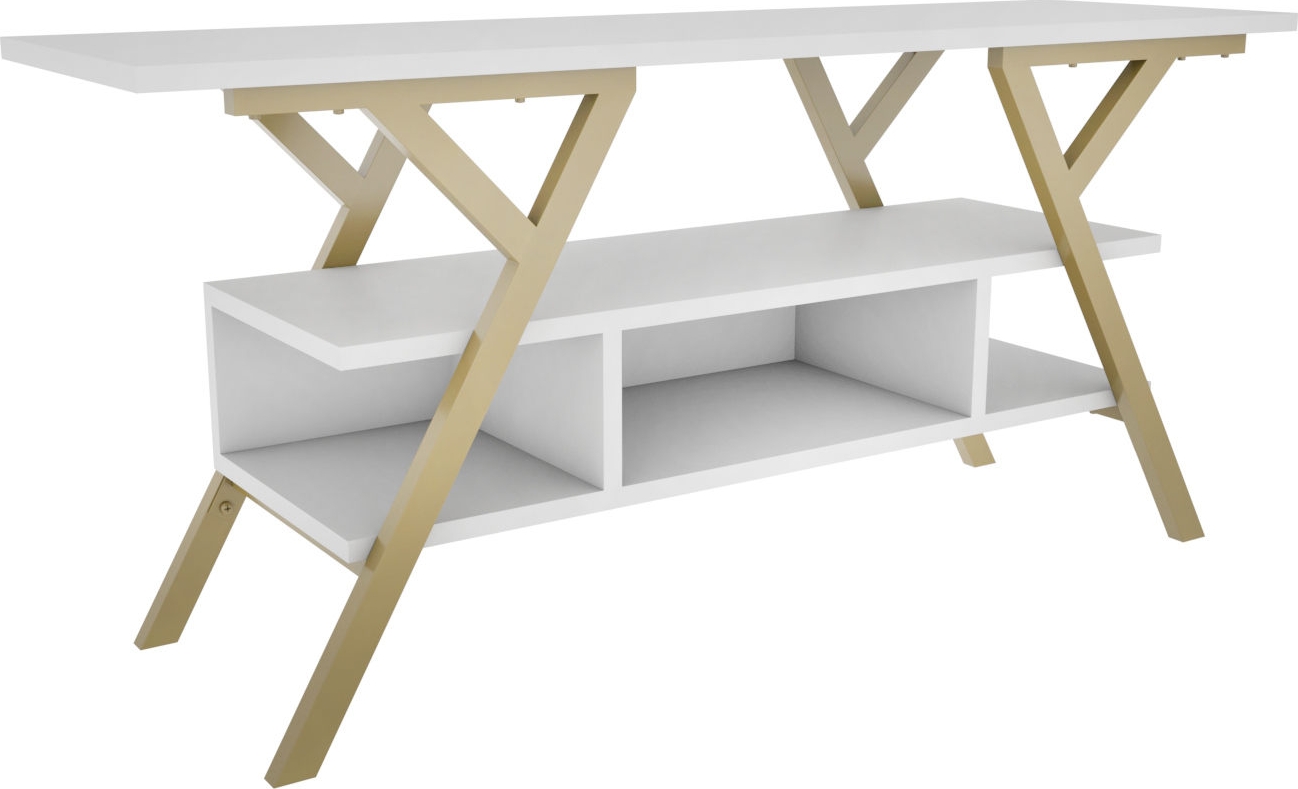 Minerva TV-bänk - Guld/vit