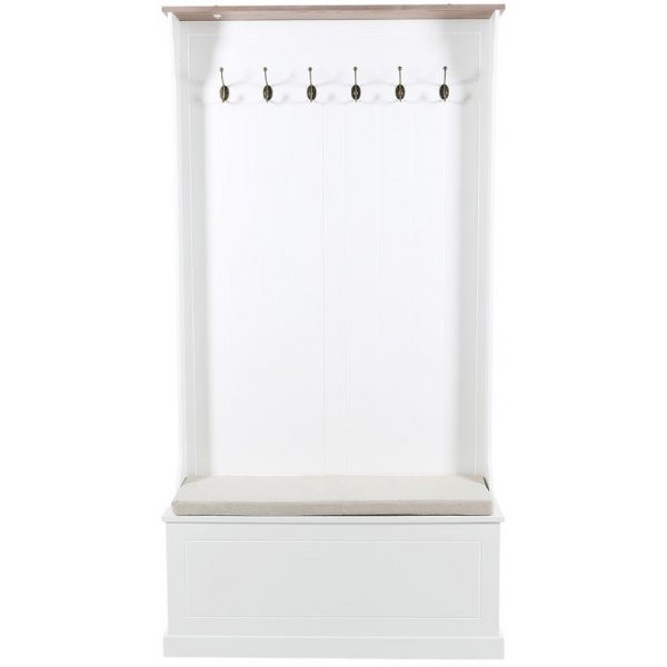 En snygg och praktiskt klädhängare från vår Missouri serie. Vitlackad färg, praktisk bänk med förvaring, 6 st krockar och en hatthylla. Perfekta hallmöblen för hemmet.