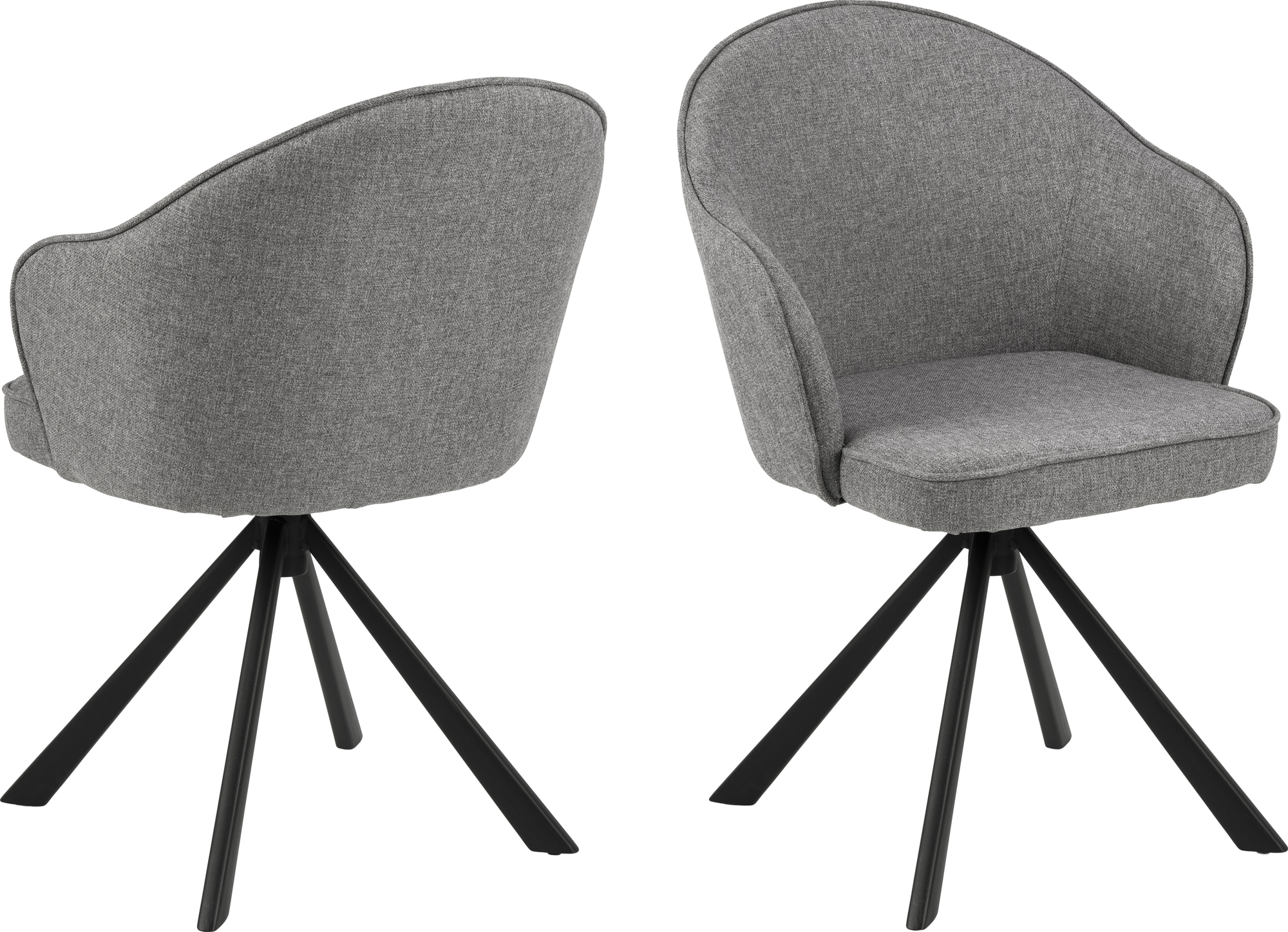 Karmstol med ben av pulverlackerad metall och klädsel av polyester.