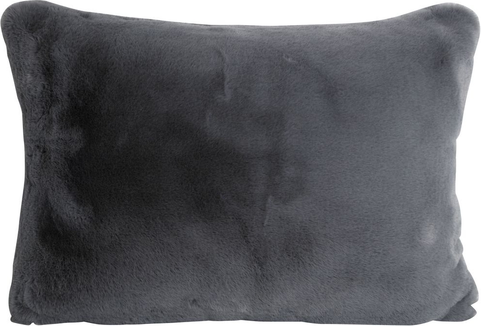 Kuddfodral mjukis i grå pälsliknande material, 100% polyester.