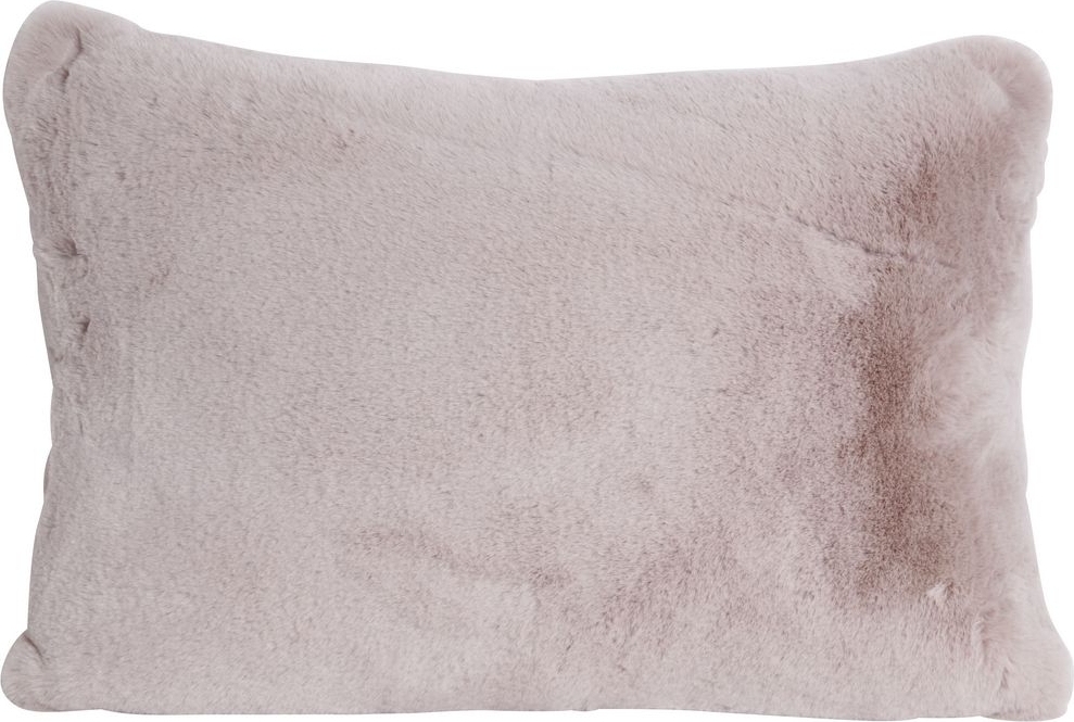 Kuddfodral mjukis i ljusrosa pälsliknande material, 100% polyester.