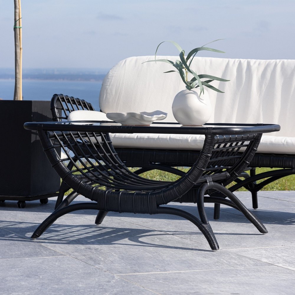 Möt Moana soffbordet - den perfekta möbeln för att förgylla ditt utomhusutrymme med elegans och funktionalitet. Detta vackra bord är tillverkat av rottingmaterial och har en stilren svart färg som kommer att komplettera din uteplats eller trädgård perfekt. Moana soffbord har en robust bordsskiva i glas som inte bara ger en modern touch, utan också en praktisk yta att placera dina drycker, böcker eller andra dekorationer. Dess generösa mått gör det möjligt att ha allt du behöver inom räckhåll, medan dess eleganta design skapar en avslappnad och inbjudande atmosfär. Dessutom är Moana soffbord konstruerat för att tåla utomhusmiljön och är perfekt för uteservering, trädgårdsfester eller avkopplande stunder på terrassen. Det är ett praktiskt och stilfullt tillskott till din utomhusinredning som kommer att göra din utomhustid ännu trevligare. Med Moana soffbordet kan du njuta av både skönhet och funktion i din trädgård eller på din uteplats.