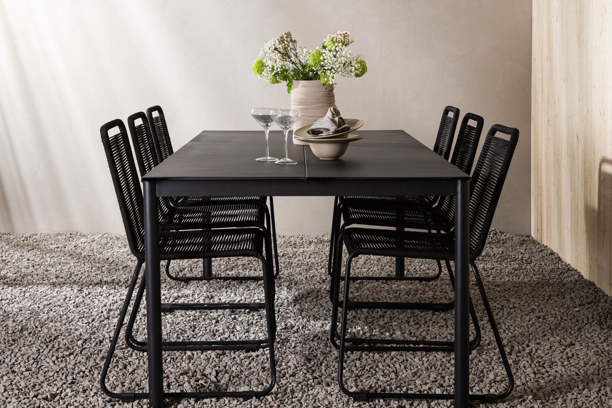 Modena utematgrupp med 6 st Lindos stolar - Svart
