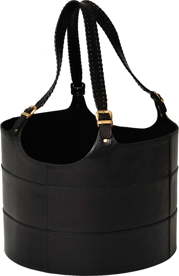 Vedkorg i skinn.