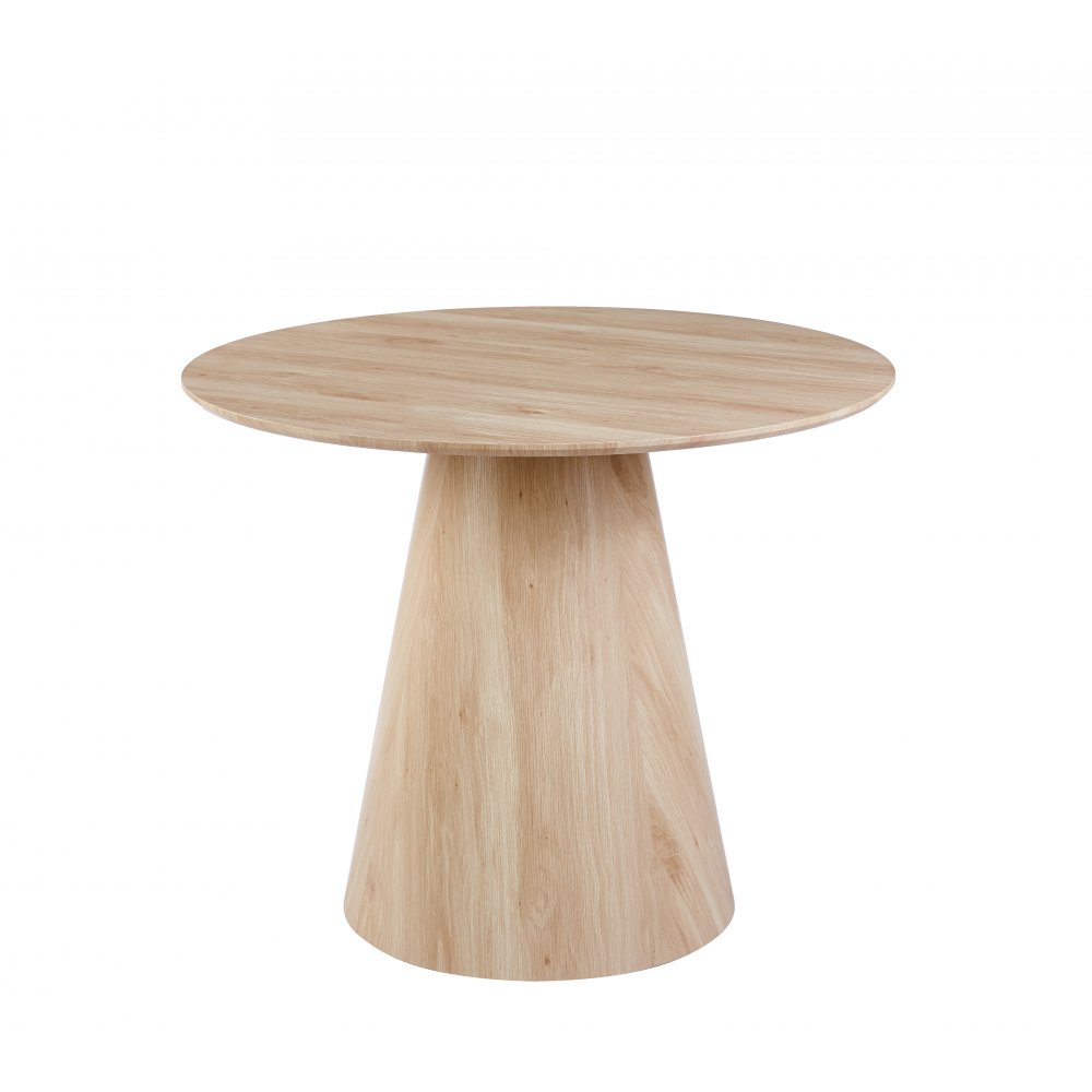 Moi matbord med rundade former för att ge ett mjukt och inbjudande intryck. Bordet är byggt i MDF trä med ekfoliering. Matbordet passar för 4 personer.