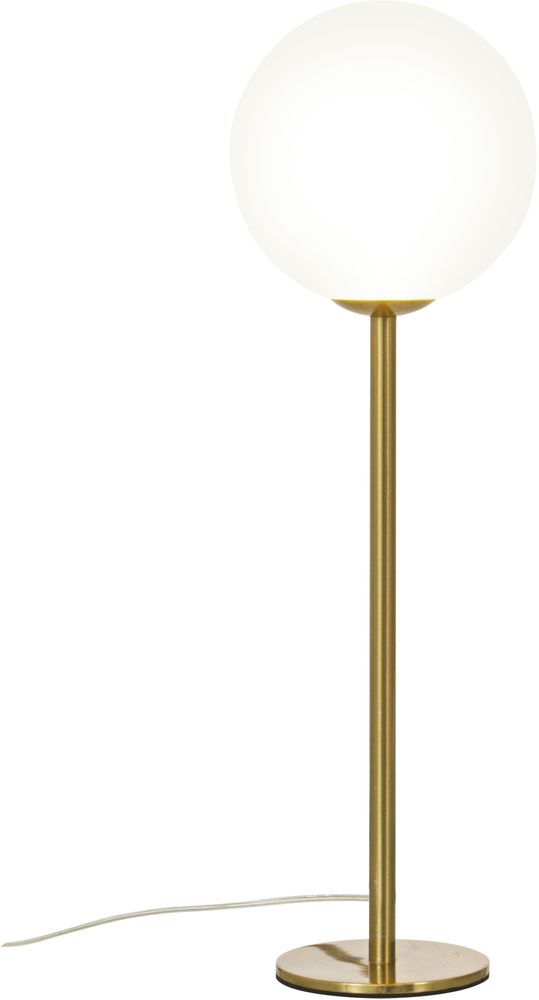Bordslampa i metall med matt mässings utförande och glaskupa i opalvitt.