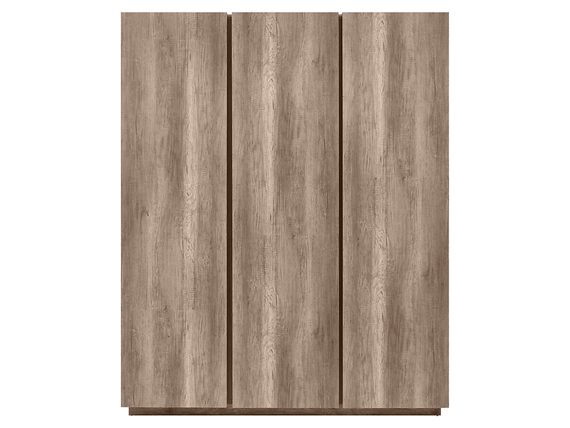 En fin 3 dörrsgarderob i ekimitation. Garderoben är idelad i 3 sektioner, två sektioner har klädstänger och i den tredje finns fyra hyllor. De ovanligt tjocka fronterna utgör en fin detalj på möbeln.