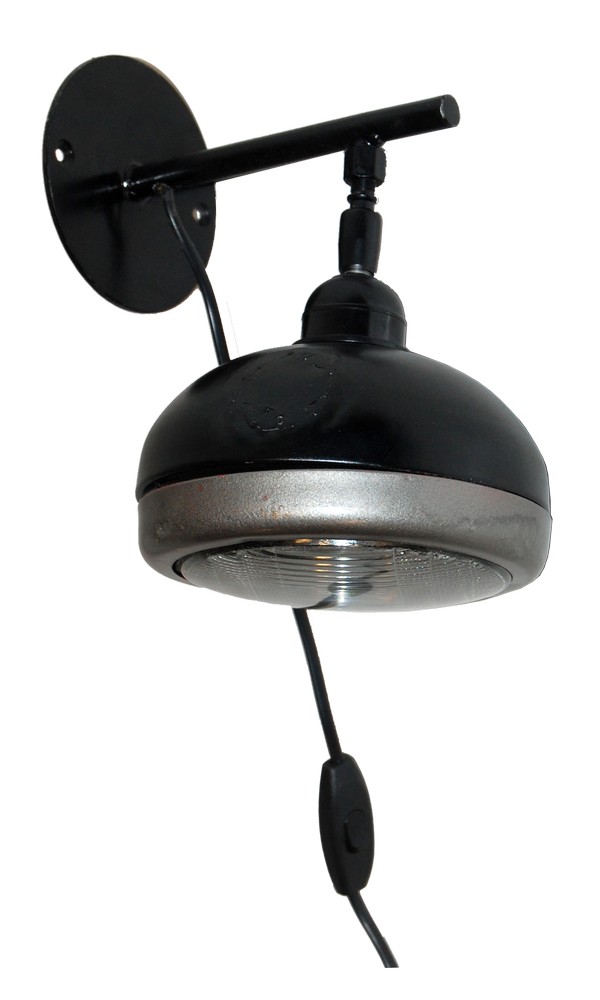 Häftig vägglampa i metall med en lite annorlunda design, formad som en gammal lampa. Innehåller även svart sladd med kontakt.