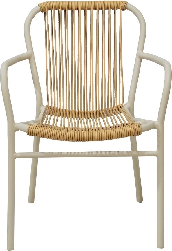 Motala karmstol i naturfärgad konstrotting med ben av vit aluminium. En stol med snygga detaljer. Finns även med svarta ben.