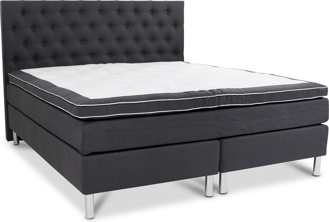 Move komplett sängpaket är en av våra bästsäljare med goda recensioner från nöjda kunder. Kontinentalsängen har en snygg antracitgrå färg med pikerad sänggavel och kromade metallben. En dubbelsäng som bidrar med en ombonad och varm känsla i ditt sovrum. Paketet innehåller 7-zons-madrass med pocketfjädersystem som ger dig god och följsam komfort och gör att du kan sova gott om natten.