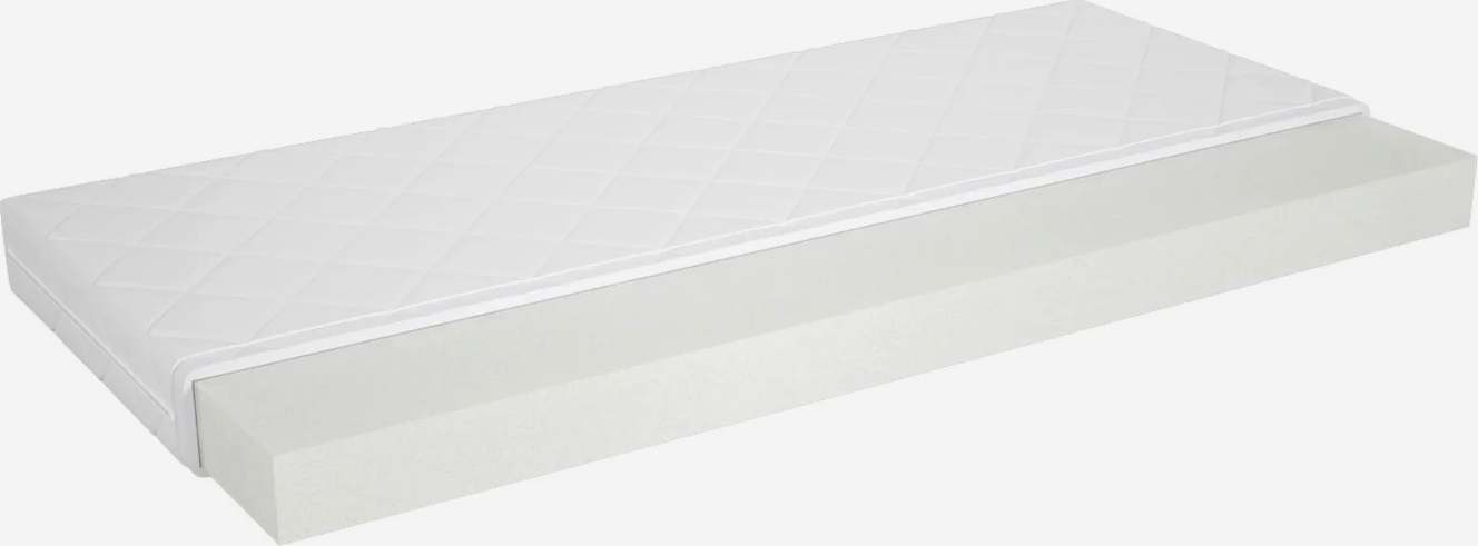 Medelhård vändbar madrass av PU-skum. Avtagbar klädsel som kan tvättas i maskin(Max 60°C). Passar barnsängar med måtten 140 x 70 cm.