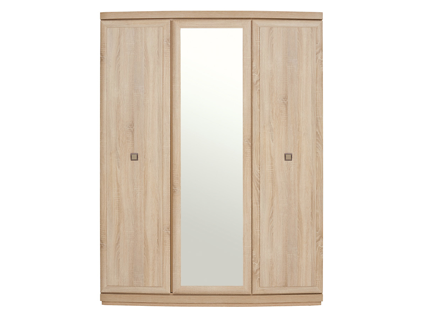 Praktisk garderob i ekimitation med 3 dörrar varav en spegeldörr. Handtag i metall som utsmyckande detaljer. Klädstång inne i garderoben. Kan med fördel kombineras med andra möbler i samma serie.