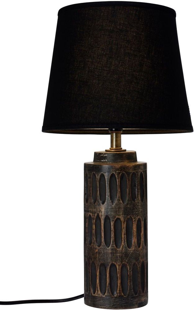 En härlig bordslampa med en stilren design. Tillverkad i trä med en härlig textur och med en svart lampskärm.