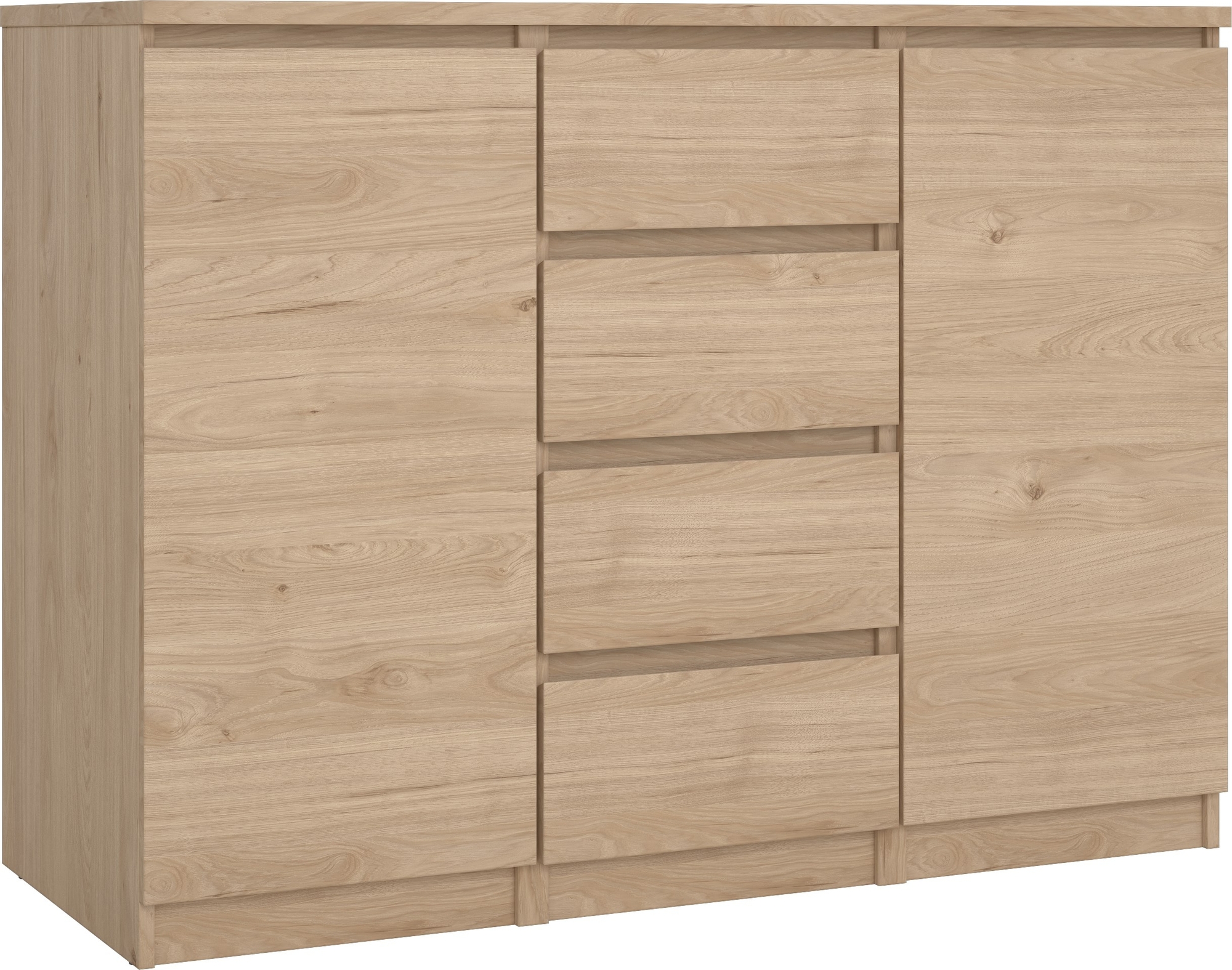Skänk av trä med kantband av melamin och ABS-plast.