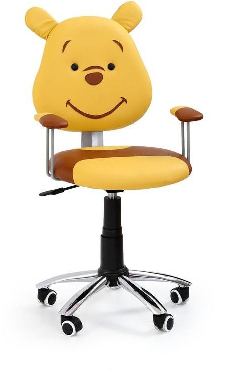 Fin skrivbordsstol som passar perfekt in i barnens rum. Klädd med ett mycket behagligt konstläder med tryck av en björn. Höj- och sänkbar sits med hjälp av spaken under sitsen samt lätt att förflytta tack vare hjulen på den kromade stjärnfoten.