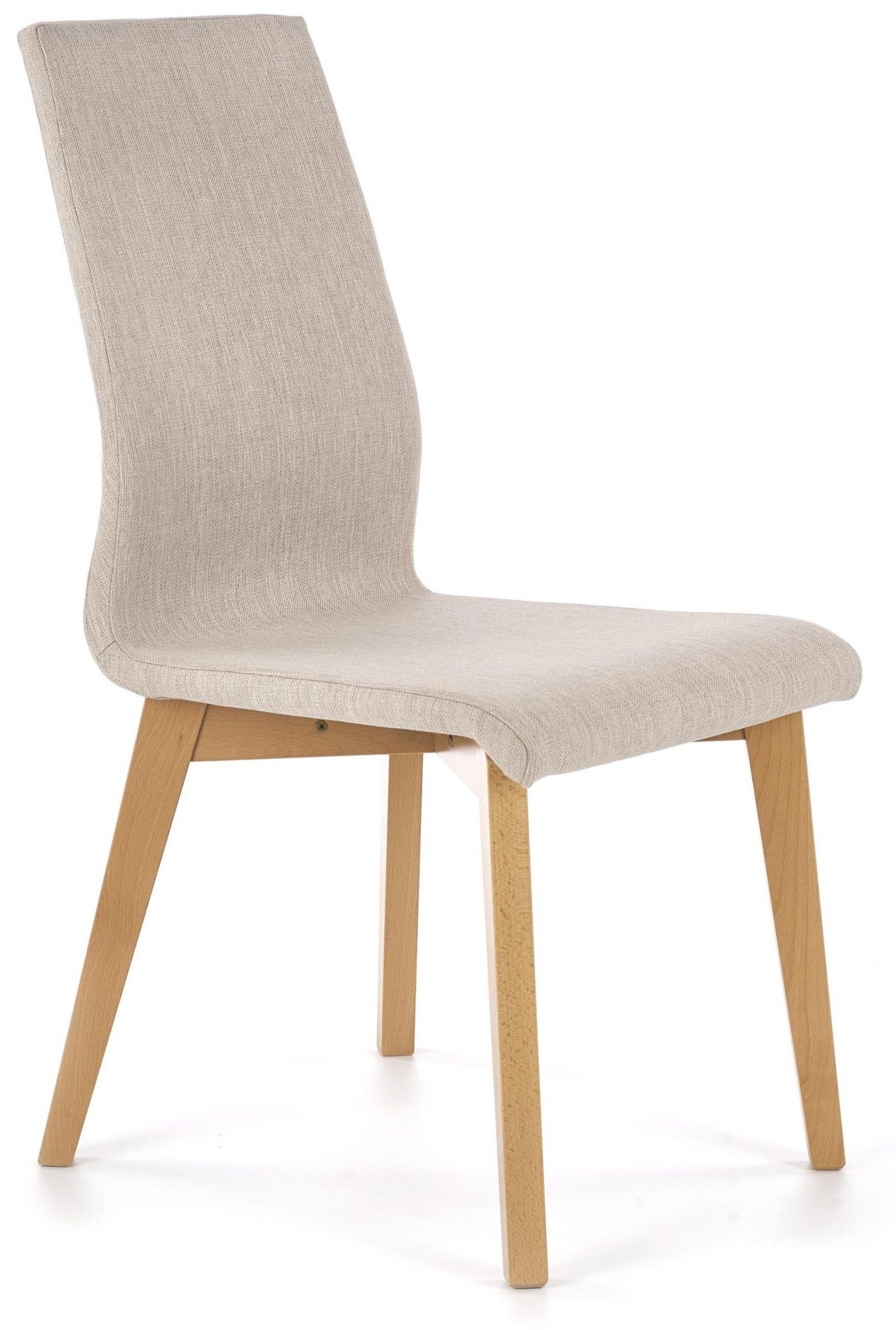 En snygg matstol med en stilren design. Stolen är klädd med ett mycket behagligt tyg för maximal komfort och underredet är tillverkat av solid trä.