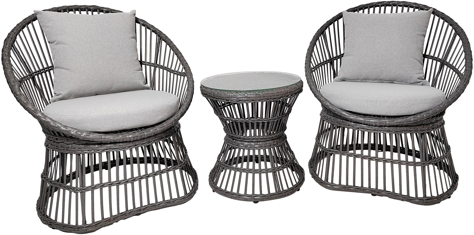 Loungeset av rotting och stål med klädsel av polyester. Levereras omonterad.