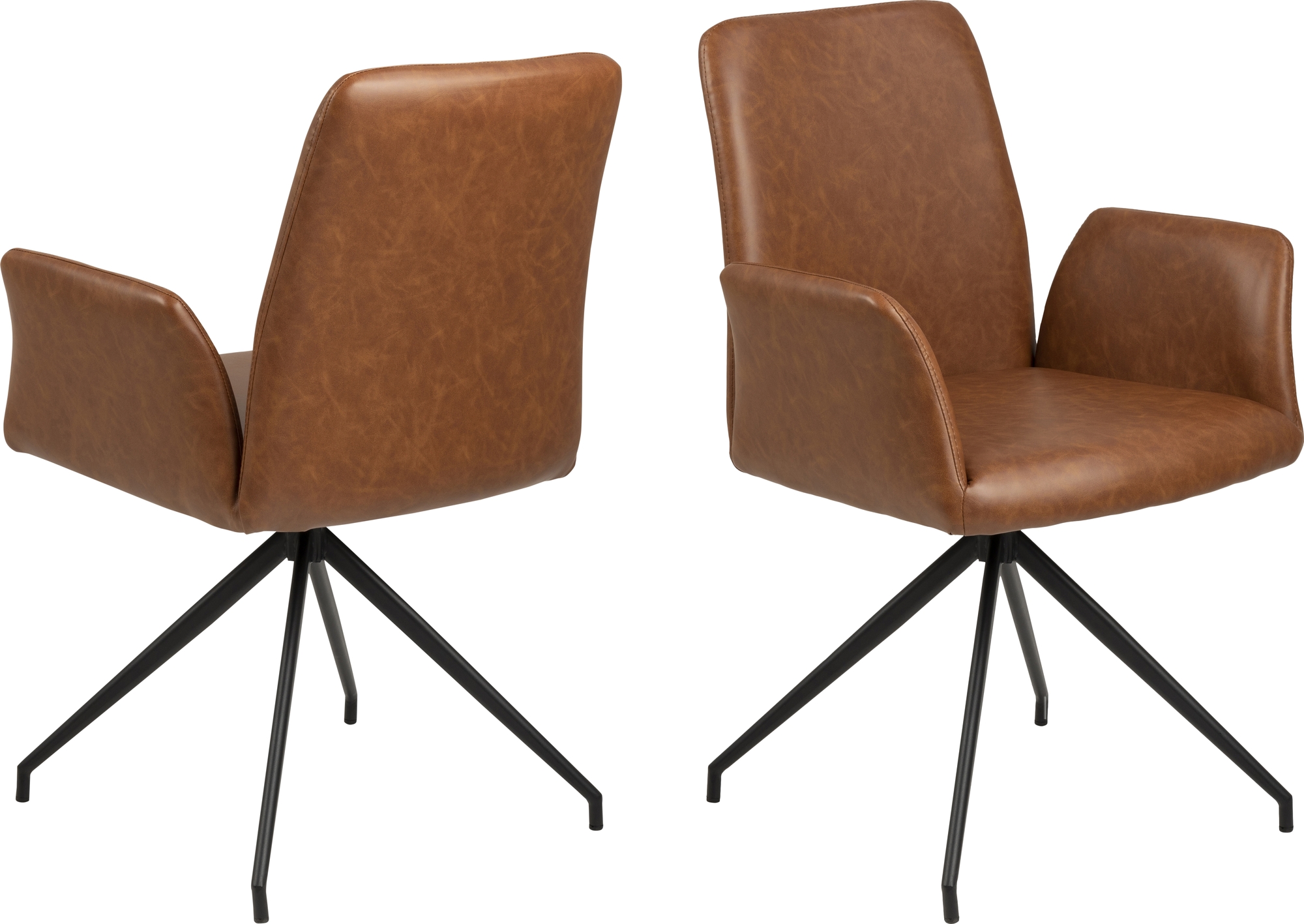 Karmstol med ben av pulverlackerad metall och klädsel av PU-läder.
