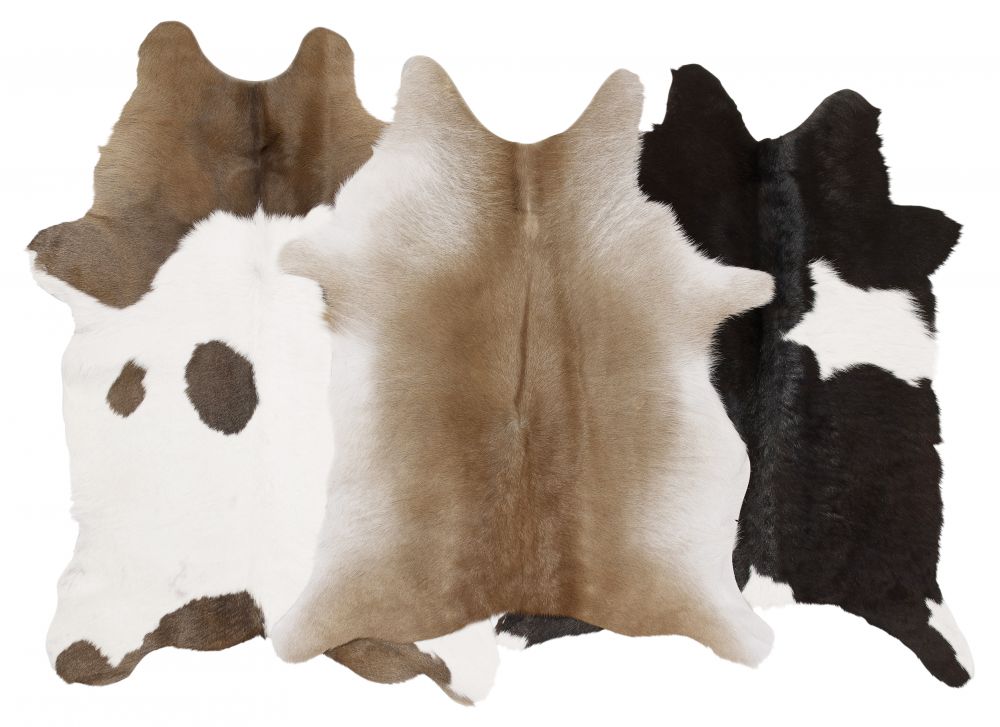 Kalvskinn från Brasilien. Varje skinn är unikt i både storlek, färg och mönster. De är lättskötta, slittåliga och passar utmärkt under stol eller fåtölj.