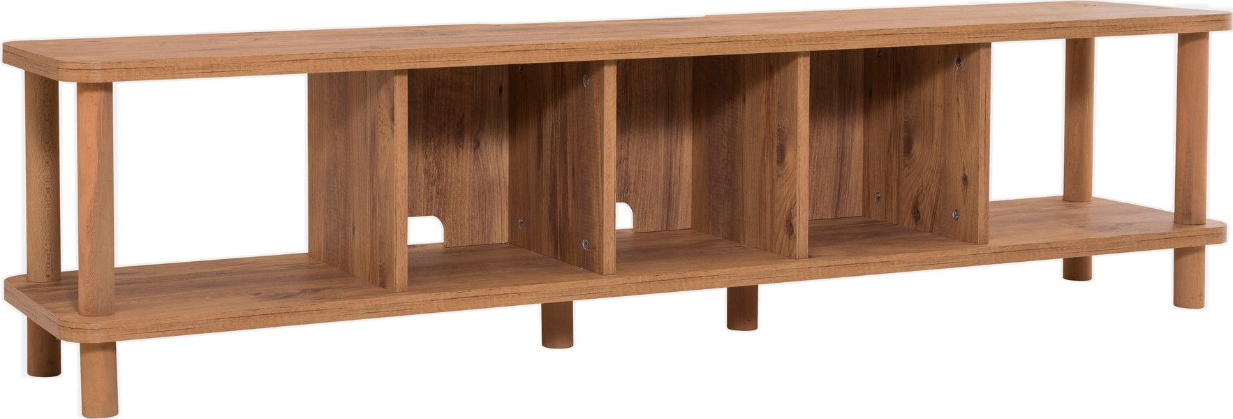 Mediabänk av melaminbelagd spånskiva och avenbok.