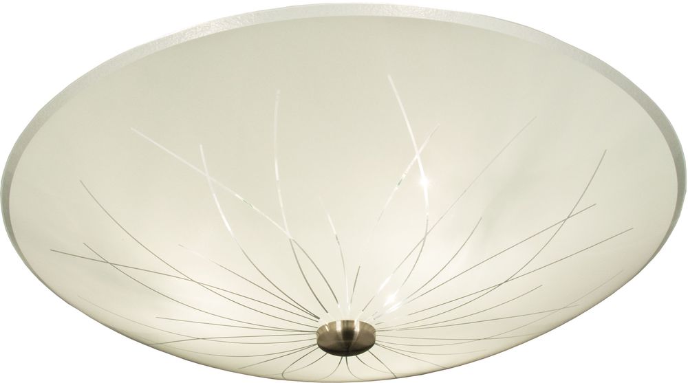 Taklampa i metall och vitt glas med mönster. Monteras lätt i taket.