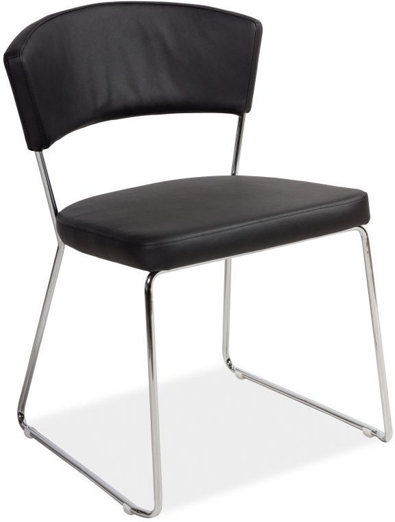 Stilren och skön matstol med kromat underrede och klädd sits/rygg i svart PU.