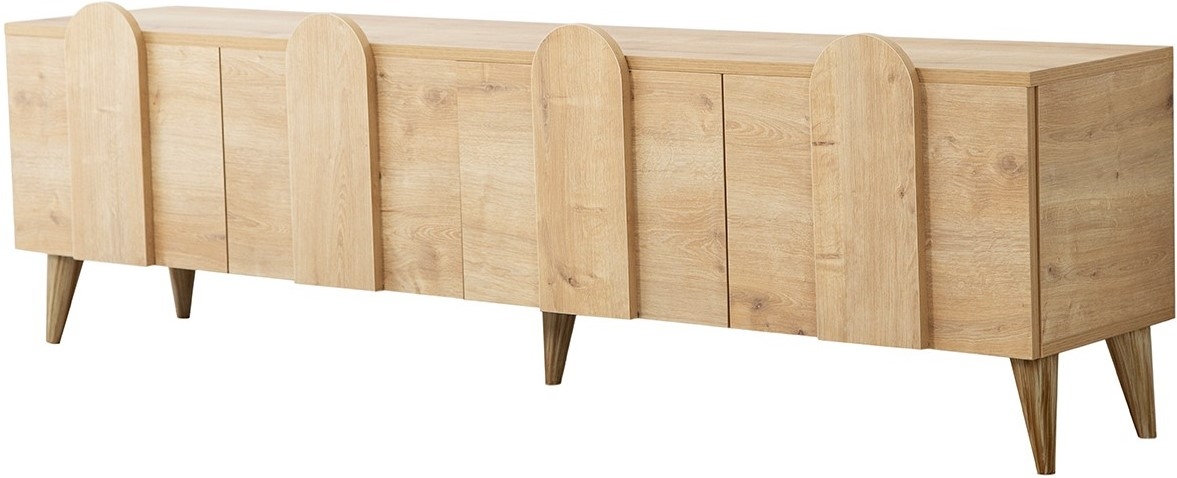 Mediabänk av melaminbelagd spånskiva med kantband av PVC.