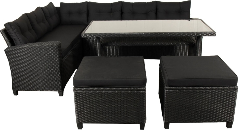 New York utegrupp; hörnsoffa med bord och fotpallar - Svart konstrotting