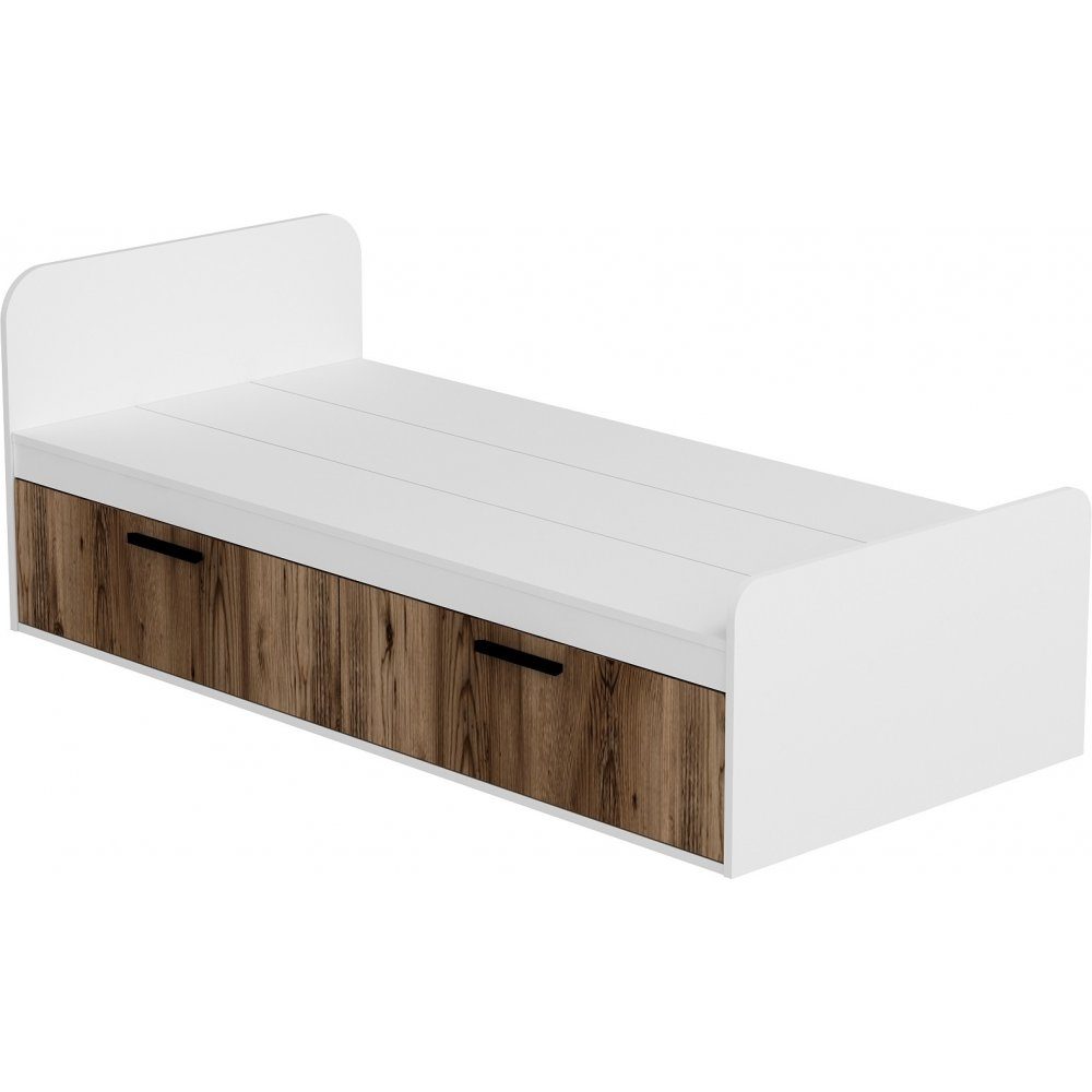 Newra enkelsäng 190 x 90 cm - Ljus valnöt/vit