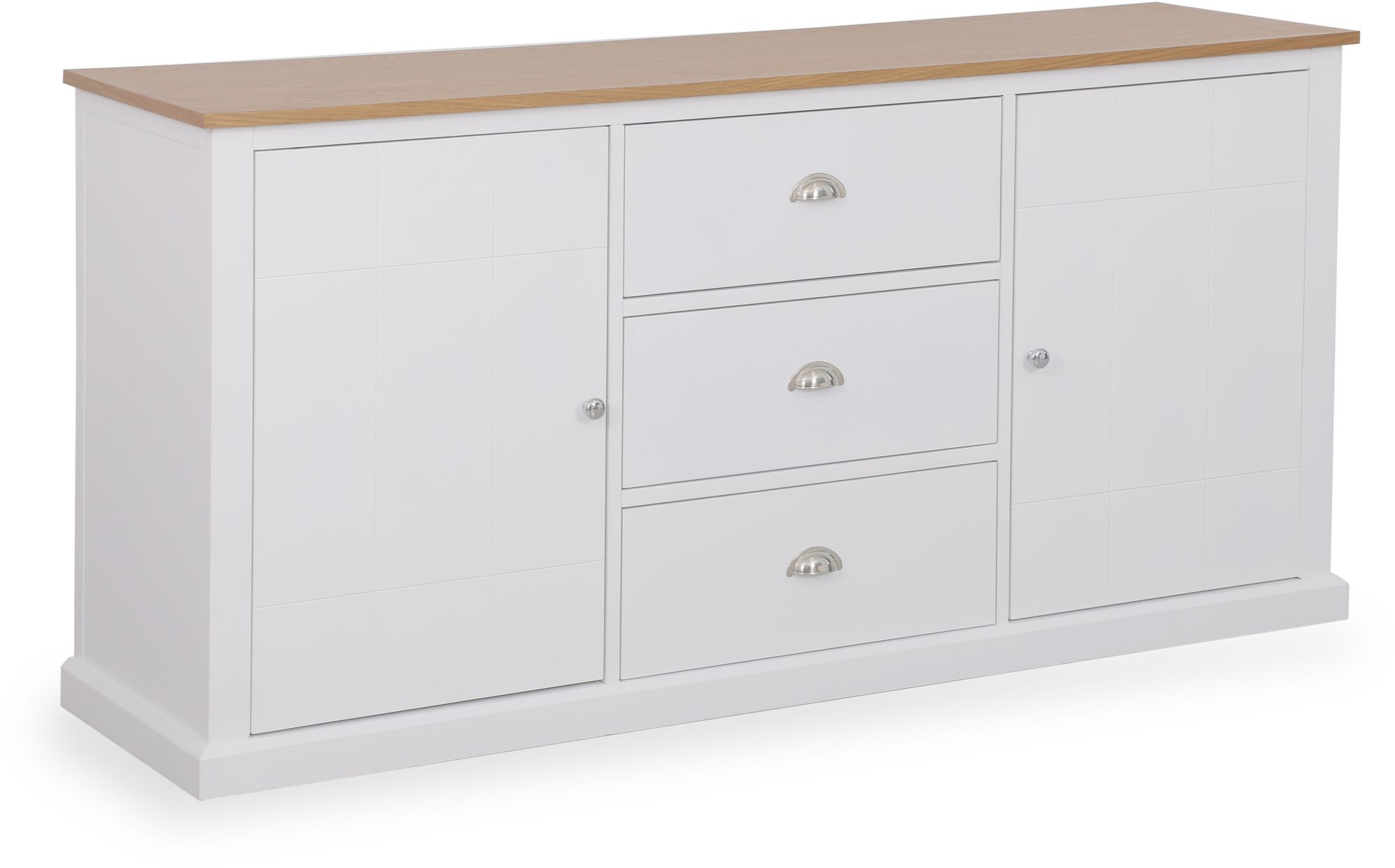 Denna sideboard har toppskiva av brunbetsad ekfanér men finns även i helvitt utförande.