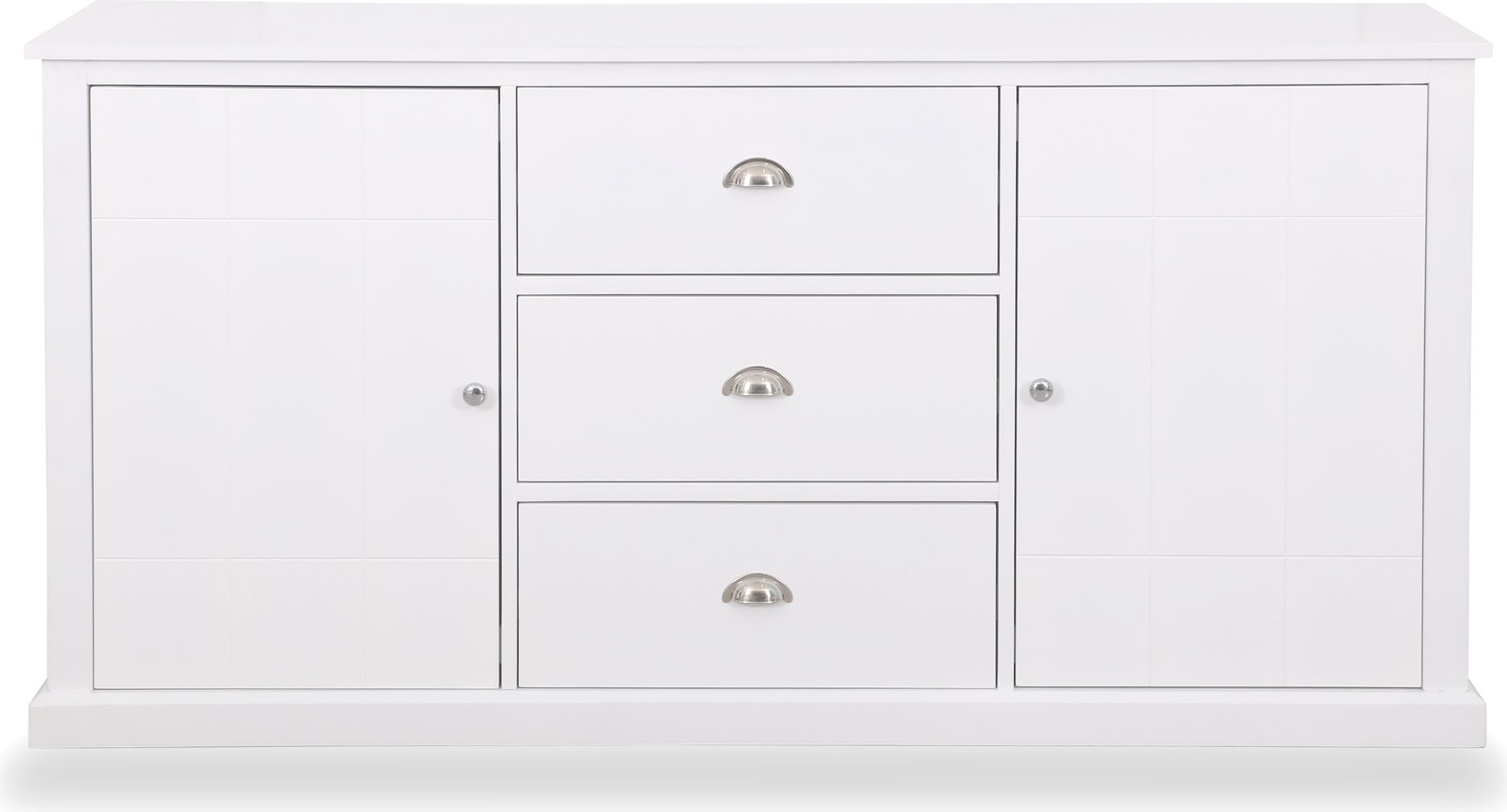 Denna sideboard är helvit men finns även i utförande med toppskiva av brun ekfanér.