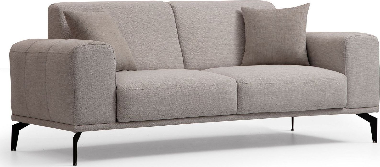 Soffa av trä med klädsel av polyester. 3 st prydnadskuddar ingår.