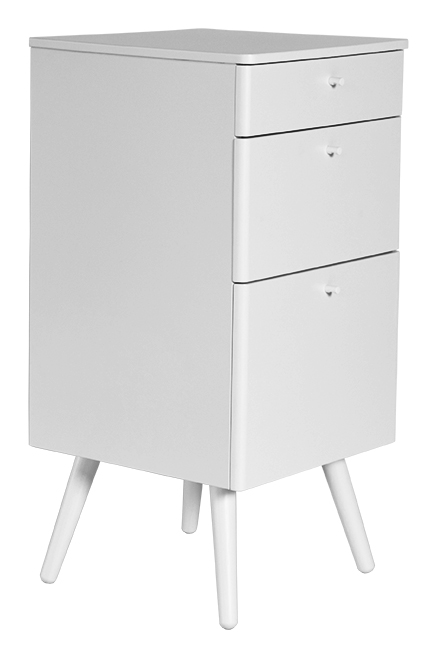 Nils är en ny Serie i stilren retro design i vitlackad MDF. Nils byrå består av 3 st utdragningsbara lådor vilket ger mycket praktisk förvaring. Lådorna går på metallskenor för en mjuk och smidig ut/in-dragning.