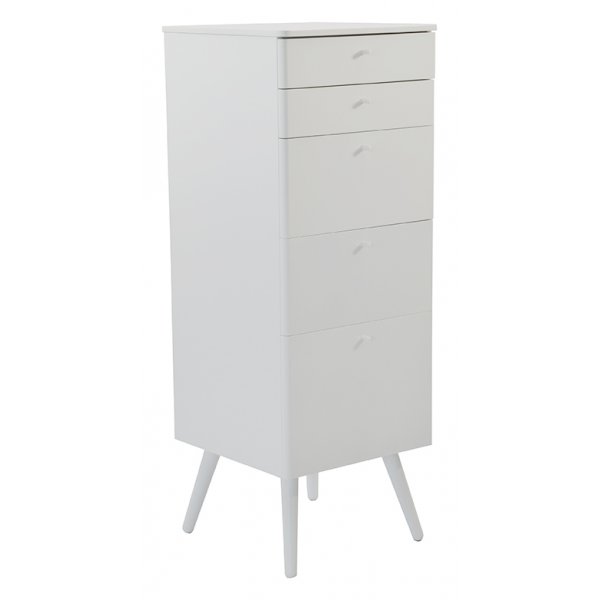 Nils är en ny Serie i stilren retro design i vitlackad MDF. Nils byrå består av 5 st utdragningsbara lådor vilket ger mycket praktisk förvaring. Lådorna går på metallskenor för en mjuk och smidig ut/in-dragning.
