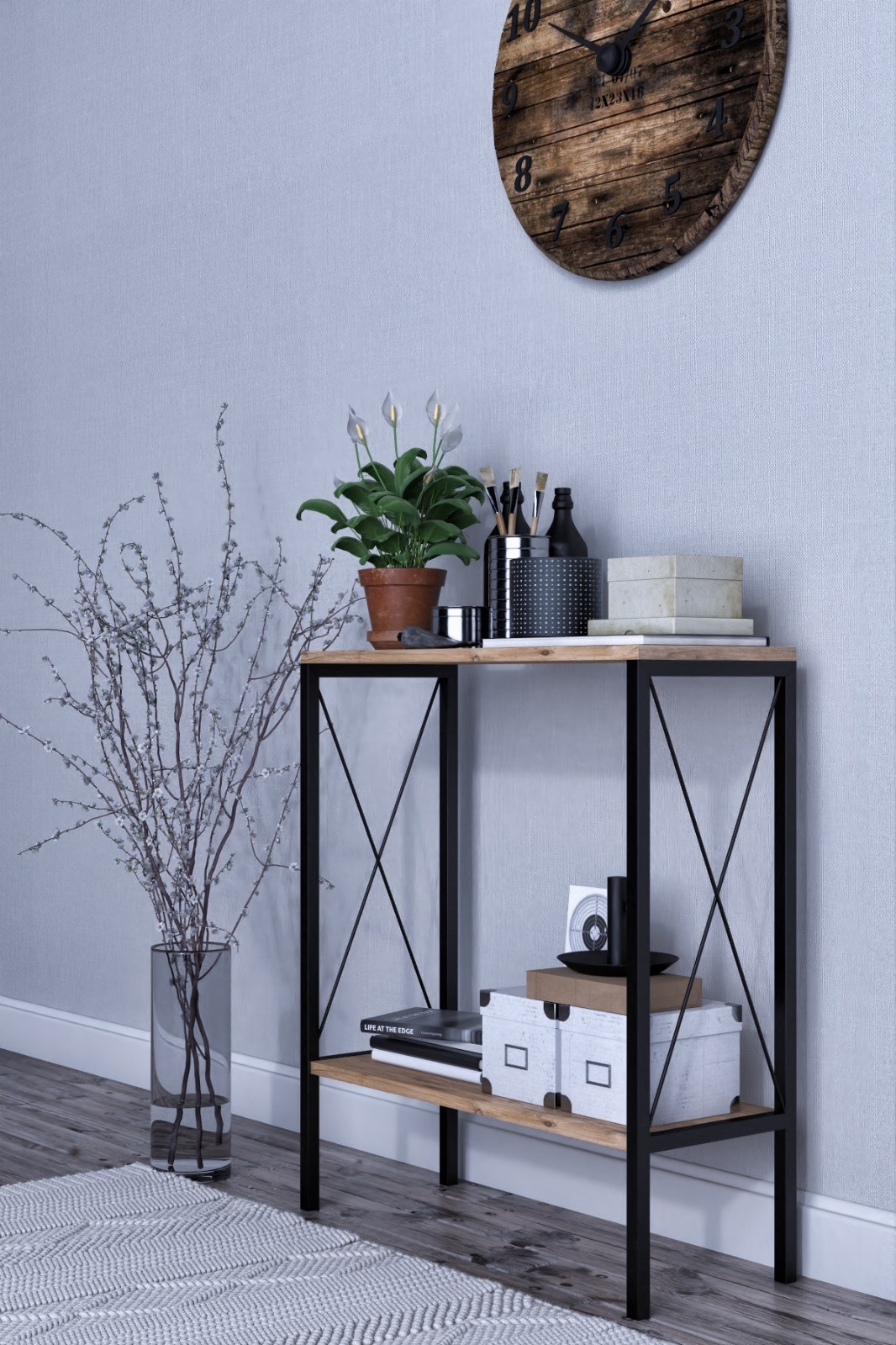 - Material: Melaminbelagd spånskiva/metall