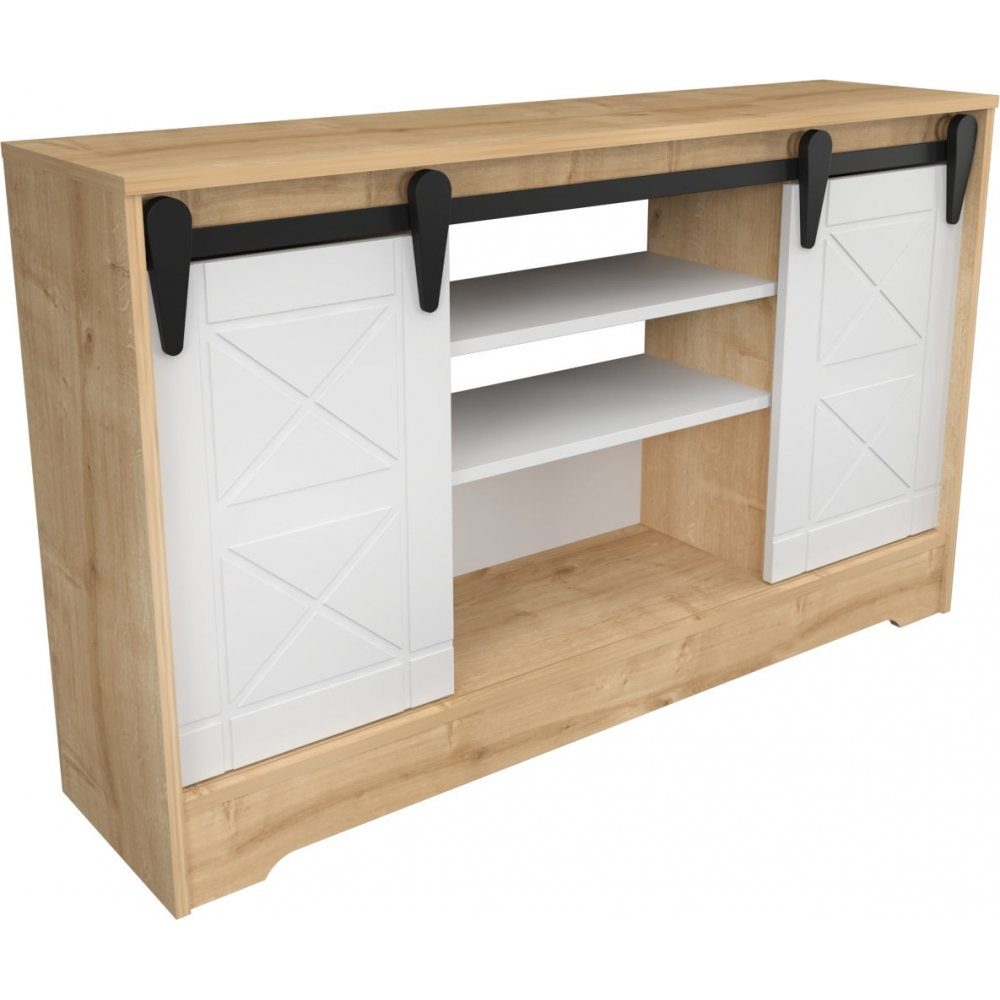 Nisay TV-bänk - Safir ek/vit