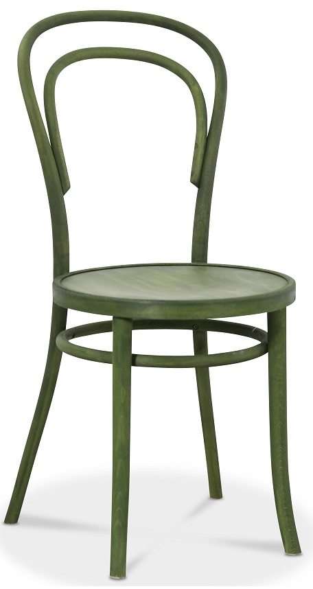 Den klassiska Stolen No14 i en snygg betsad grön nyans. Stolen byggs i Europa utav en av de främsta stolstillverkarna i världen. Högsta kvalitét för både hemmamiljö och offentlig miljö. Trästommen böjs förhand i en kvalitetssäkrad och avancerad tillverkning för att stolen skall hålla en hel livslängd.