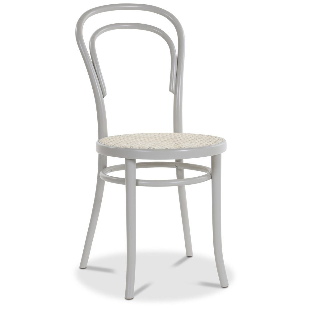 Grålackad stol No 14,ochnbsp;ritad av Thonet, I böjträ med beige rottingsits! Levereras monterad. Klassisk designikon. Passar både till modern inredning som retro och vintage. Detta är "Stolarnas Stol" enligt världens experter.