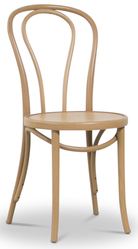 Den klassiska Stolen No18 i en honungsfärgad bets. Stolen byggs i Europa utav en av de främsta stolstillverkarna i världen. Högsta kvalitét för både hemmamiljö och offentlig miljö. Trästommen böjs förhand i en kvalitetssäkrad och avancerad tillverkning för att stolen skall hålla en hel livslängd.