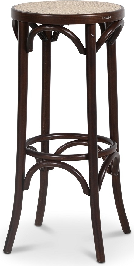 Barpall i valnötsbetsat böjträ med sits i naturrotting. Levereras monterad. En klassiker som är formgiven av Michael Thonet.