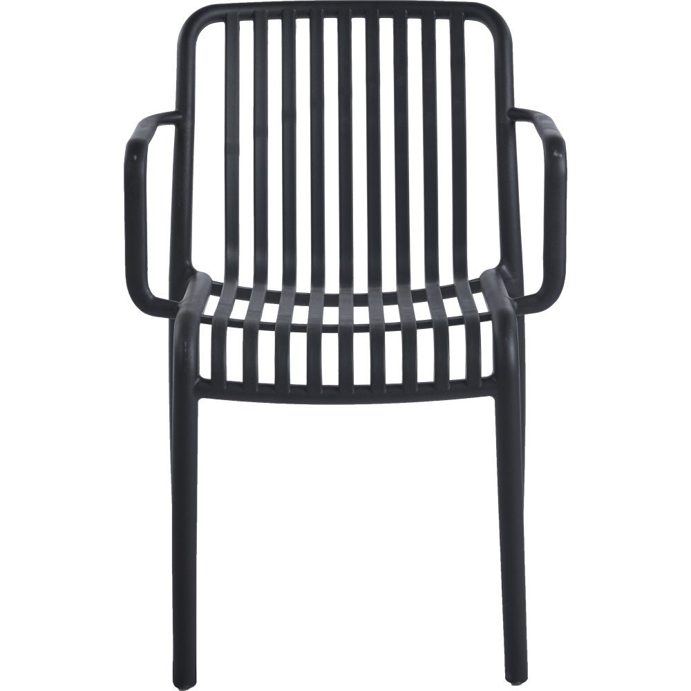 Noa är en svart matstol i väderbeständig polypropylene-plast. Stapelbar stol. Matstolen går att använda både inomhus och utomhus.