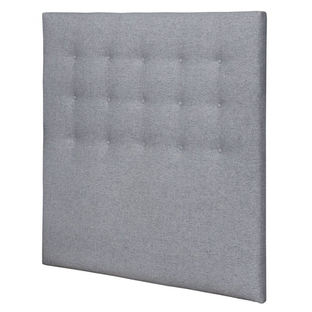 Sänggavel Noel i grått slitstarkt tyg (Neve 85). Sänggaveln har en klassisk design med knappar för att ge sänggaveln ett så modernt utseende som möjligt i sovrummet.