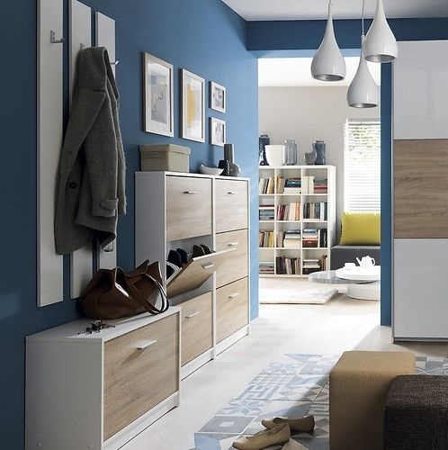 Nätt skoskåp i vit/ekimitation med tre fack för skor.