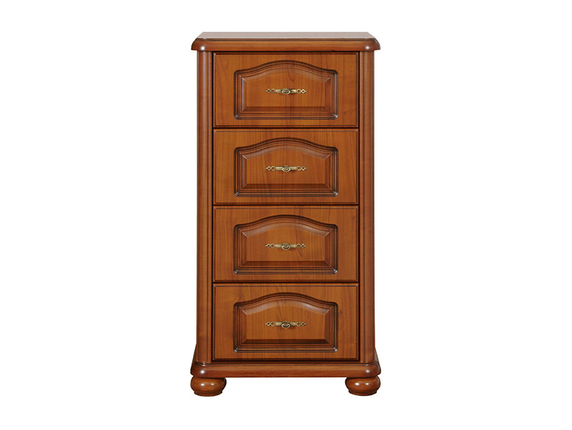 Nätt byrå i körsbärsimitation med fyra lådor och snyggt rundade ben.