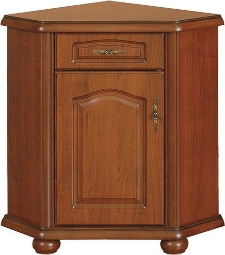 Nätt skåp i körsbärsimitation med en dörr och en låda, snyggt rundade ben.