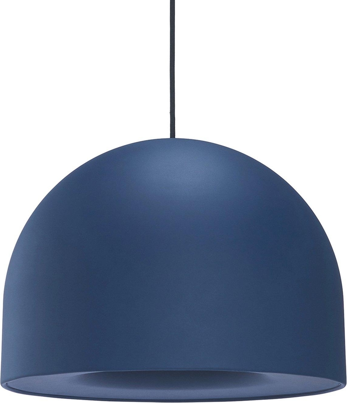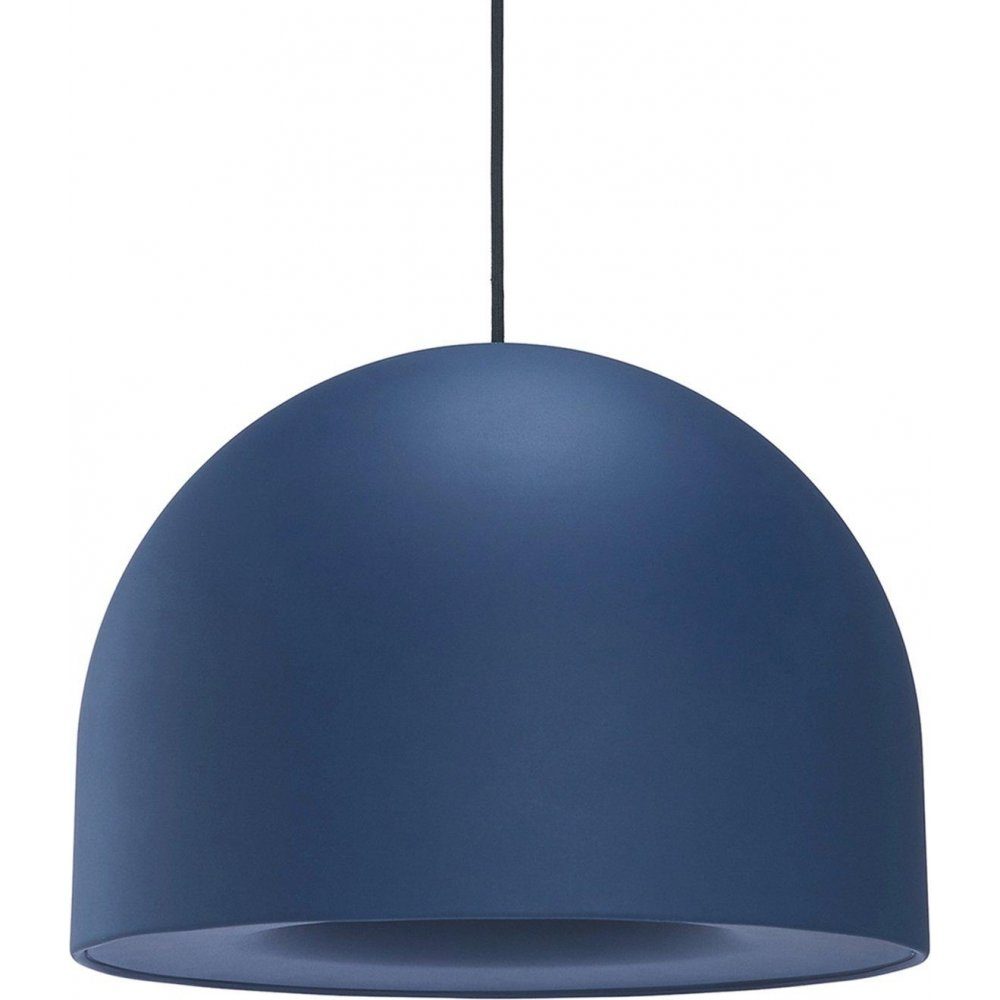 Taklampa Norp i mörkblå metall och matt yta. Lampan ger ett behagligt sken tack vara den formade insidan som är ton i ton med utsidan. Svart textilsladd 200 cm och takkopp i samma färg som lampan, takkoppen har krokupphäng. Passar till ljuskälla med E27 fattning. Ljuskälla och takkontakt köpes separat.
