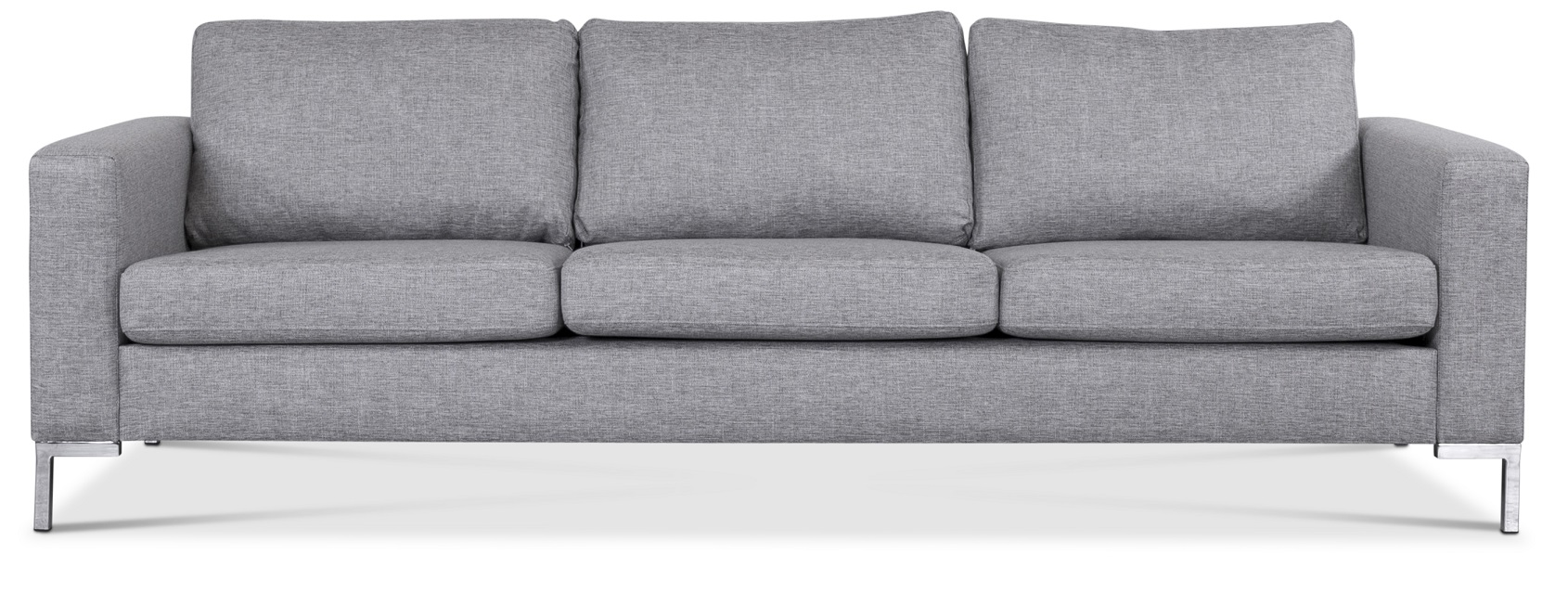 Nova 3-sits soffa är en mycket prisvärd soffa i modern design. Den höga kvaliteten gör att ni kommer att ha mycket glädje av soffan under många år framöver. Högkvalitativ kallskum 35kg densitet. Lättplacerad soffa med ett slitstarkt grått tyg som faller de flesta i smaken. Kromade metallben ingår.