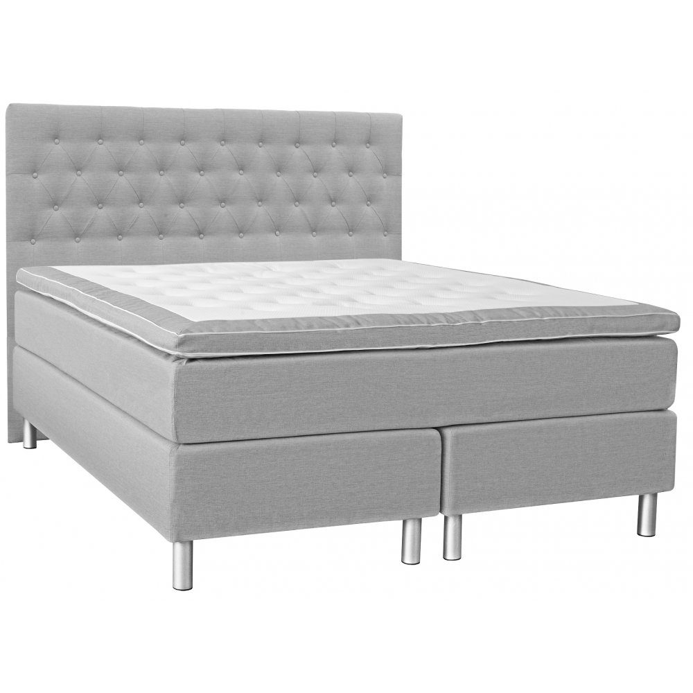 Nova kontinentalsäng är ett komplett sängpaket med lyxig 7-zons pocketfjädring och pikerad sänggavel i ljusgrå klädsel. En dubbelsäng i klassisk och samtidigt lyxig design som ger dig god sovkomfort och hög kvalitet.